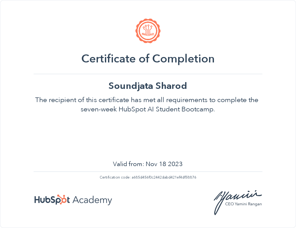 After my summer internship at HubSpot, they asked me to participate in the HubSpot AI Student Bootcamp in September. At this bootcamp, I learned how to utilize HubSpot Marketing Software and leverage HubSpot’s new generative AI tool, ChatSpot, to help write email and blog content.